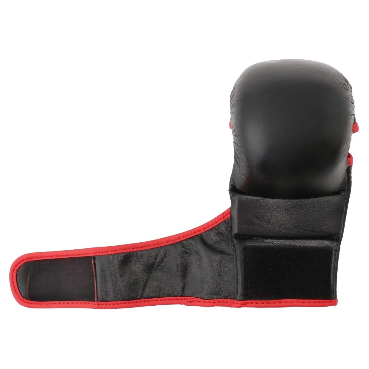 Open-palm MMA gloves featuring segmented knuckle padding and a secure wrap-around wrist strap for grappling and striking transitions.