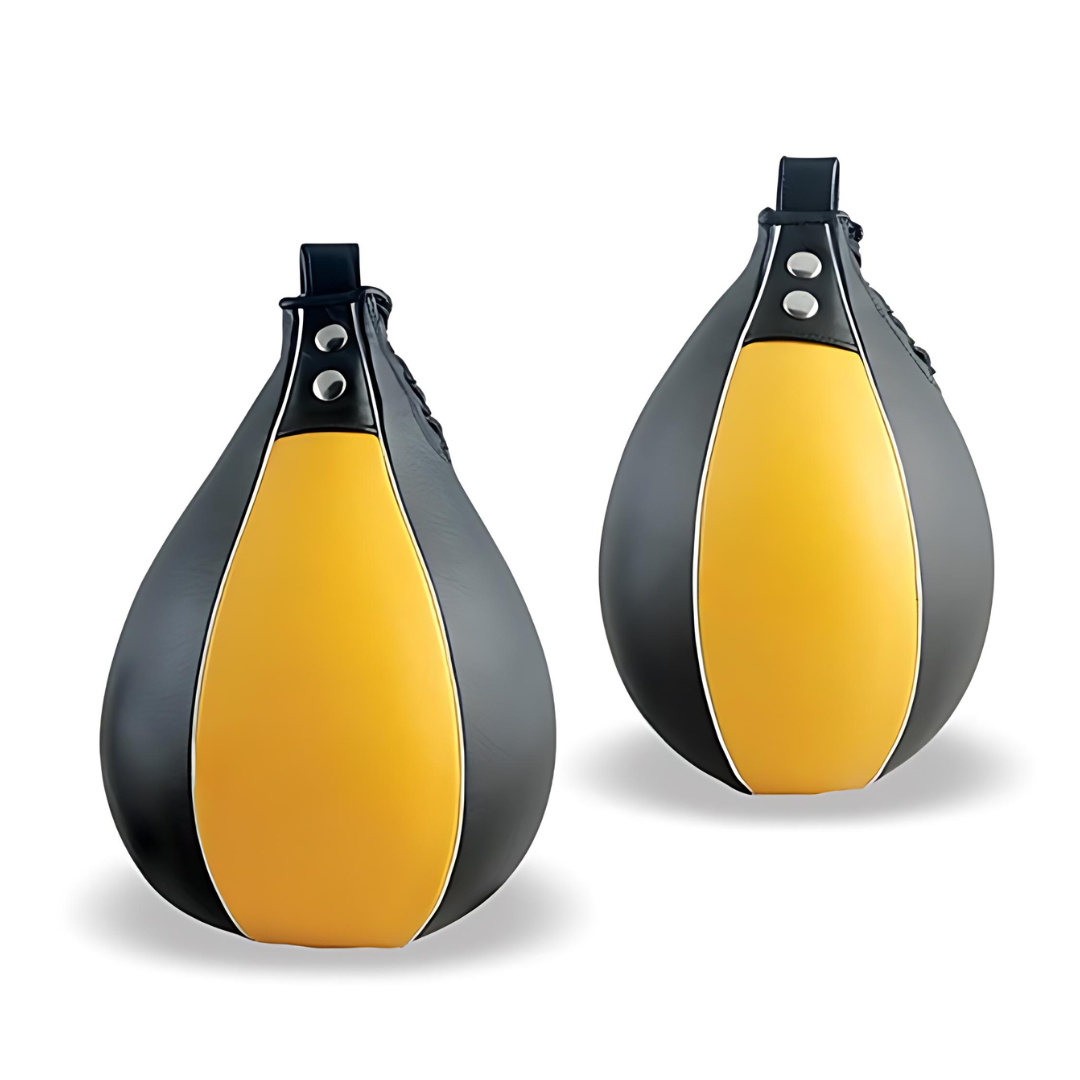 Animo Sports Apex Velocity Pro Speed Bag. Designed for lightning-fast rebounds and precision timing, this speed bag is the gold standard for developing hand-eye coordination and shoulder endurance. The balanced teardrop shape ensures a consistent arc and rhythm, while the reinforced loop and swivel-ready top are built to handle high-frequency impact. Wrapped in a high-visibility Solar Yellow and Stealth Black paneling, it allows athletes to track the bag easily even during maximum-velocity drills.